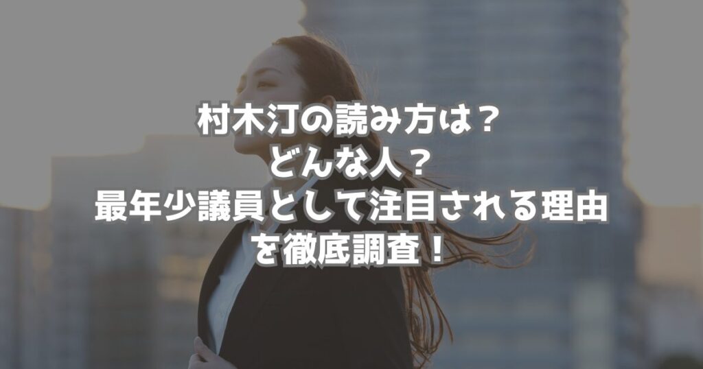 村木汀の読み方は?どんな人?最年少議員として注目される理由を徹底調査!
