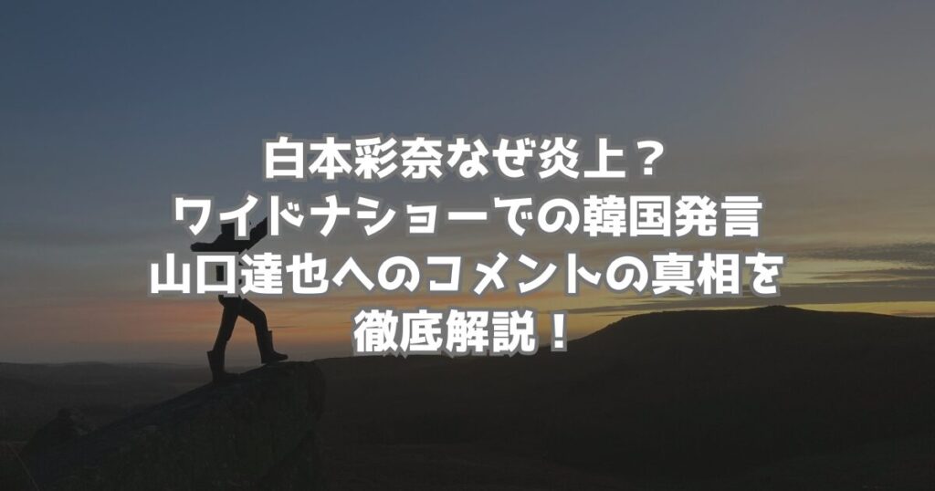 最近ネット上でたびたび話題になる白本彩奈さん。 過去に「炎上した」と言われることがありますが、「一体何があったの?」と気になっている方も多いのではないでしょうか? 今回、 ワイドナショーでの発言内容 炎上した理由と背景 山口達也さんに関する発... -