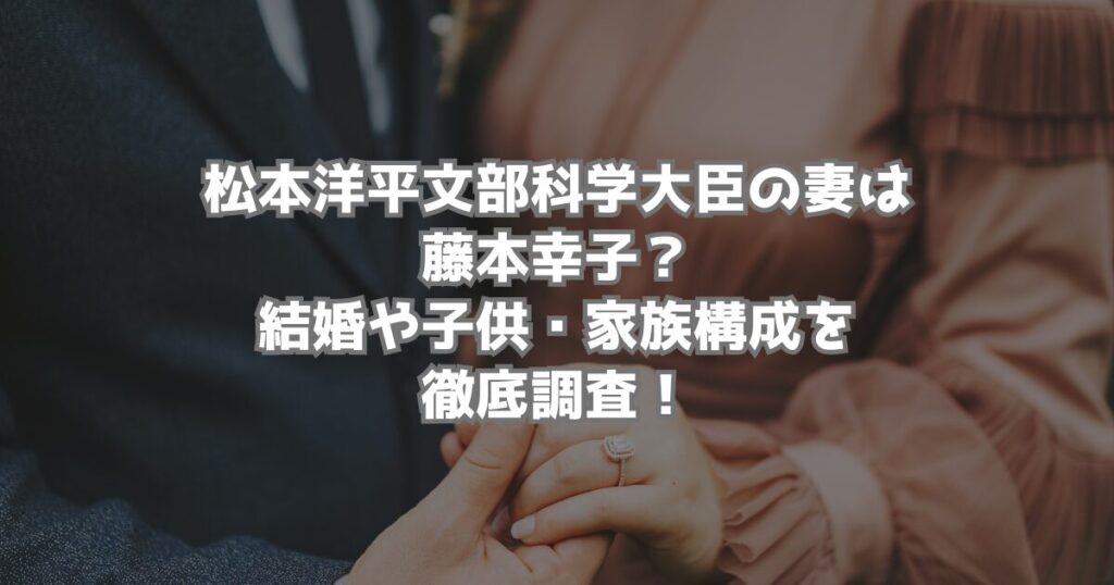 2026年3月、松本洋平文部科学大臣の不倫報道が大きな話題となりました。 政治家のスキャンダルが報じられると、 妻は誰? 結婚したのはいつ? 子供はいるの? 家族はどうなるのか? と気になる人も多いのではないでしょうか。 今回、 松本洋平文部科学大臣... -