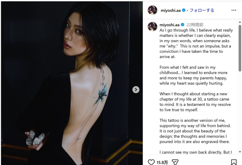 三吉彩花さんがタトゥーを入れた理由は、30歳という節目に“自分らしく生きる”決意を形にし、これまでの感情や記憶を背負いながら新しい人生をスタートさせるためでした。
